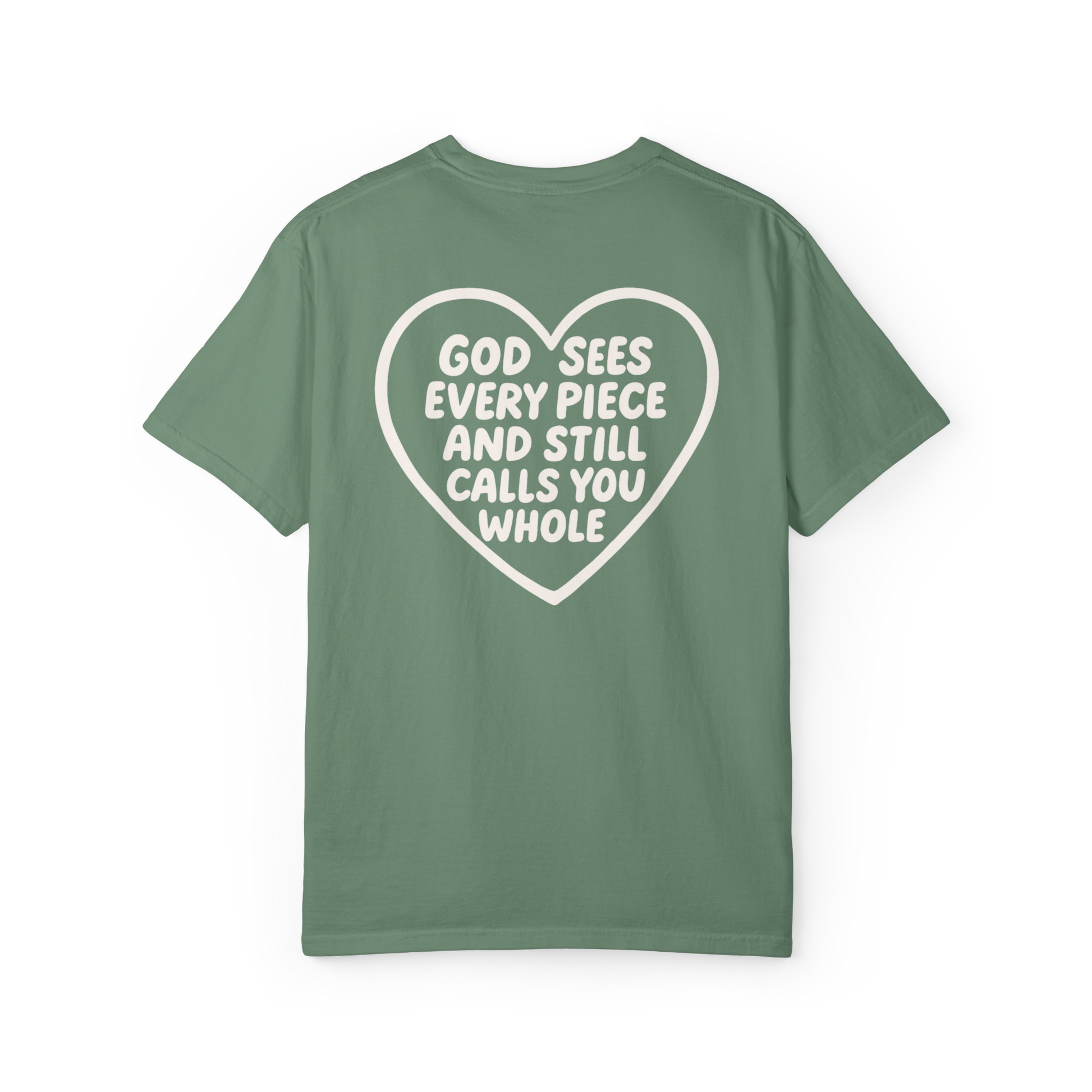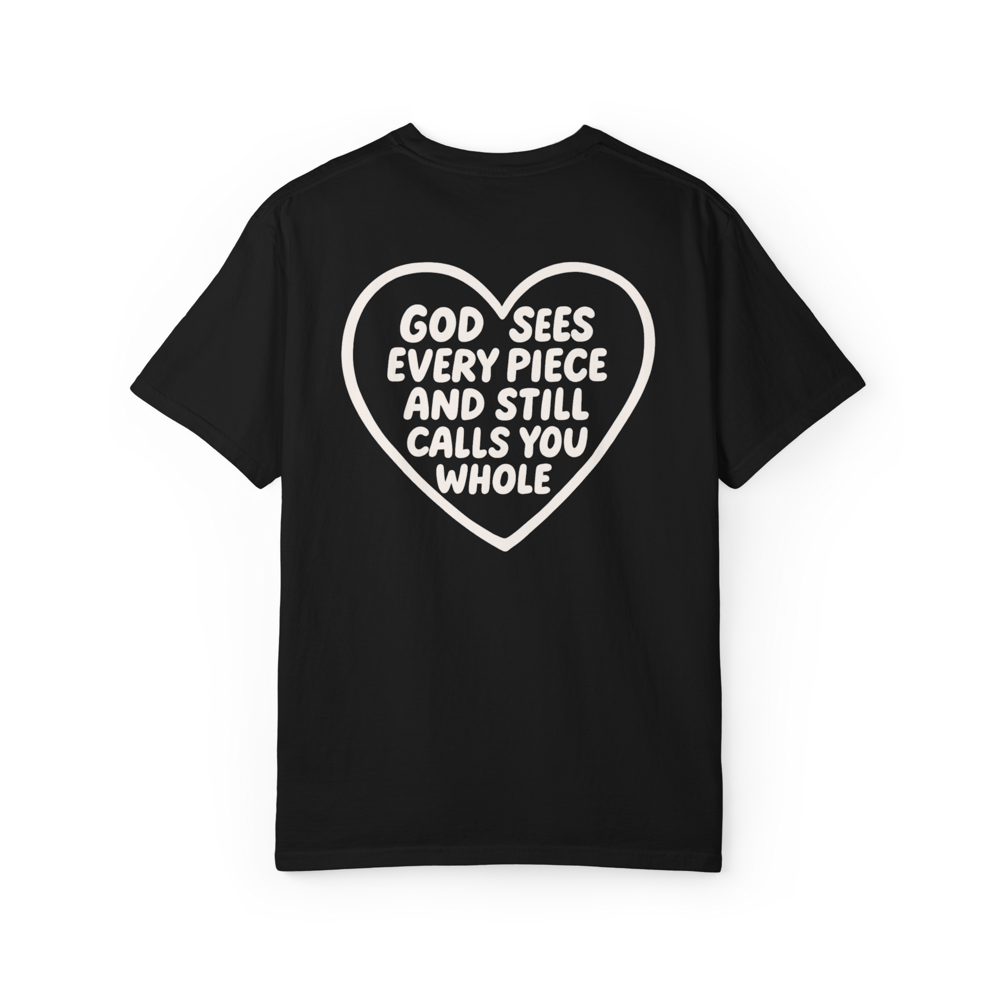 This tee is a reminder that God's view of you is complete, even when you feel like you're in pieces.