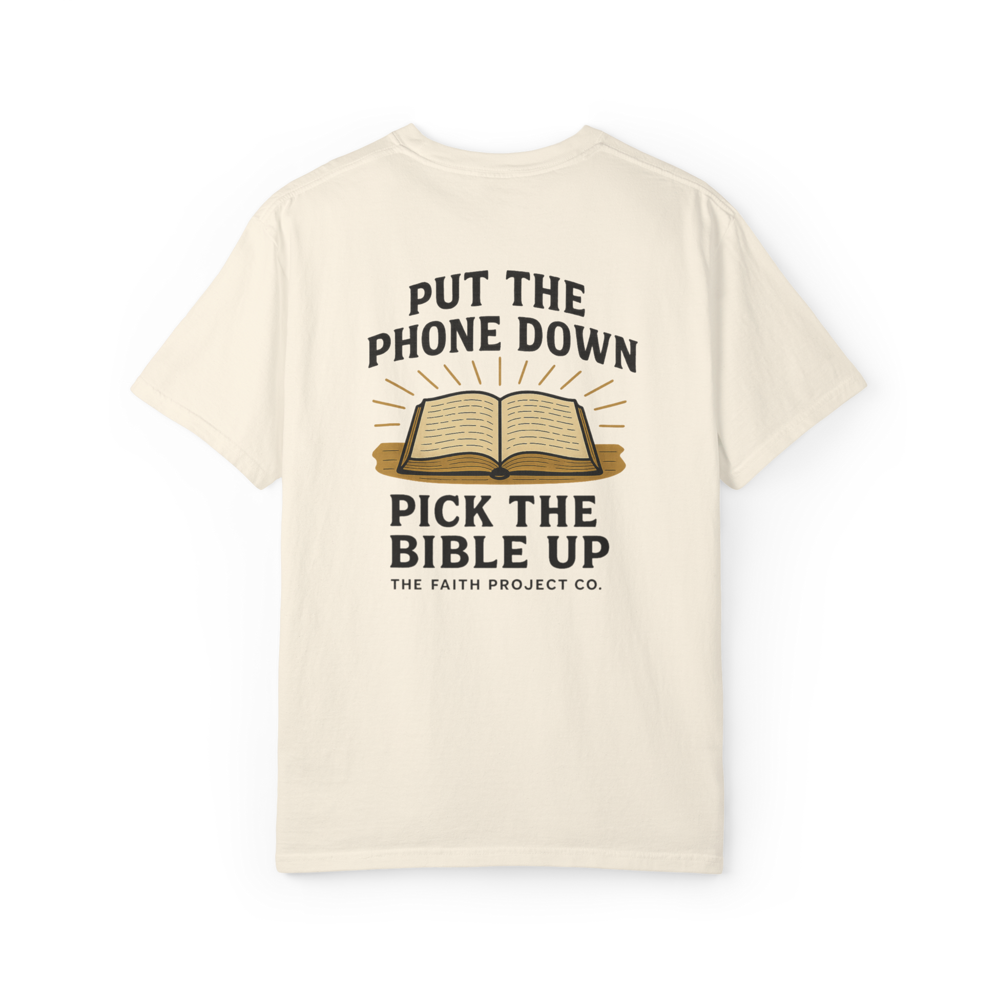 This tee is a reminder that your life is meant to be lived, not just scrolled through. Phones can distract us from what really matters, being present, growing in faith, and spending time in God’s Word.